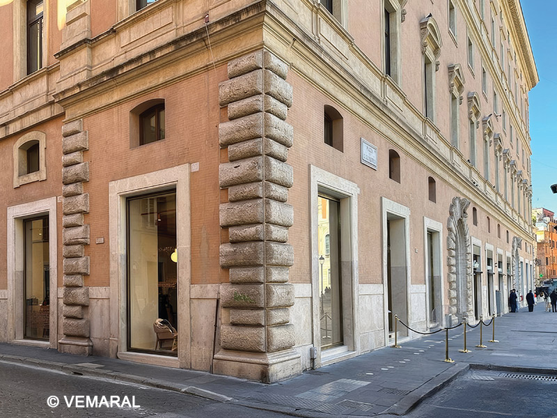 Some 500 kilometers to the south, in Rome, a flagship coffeehouse facade has been demonstrating since 2024 how powder‑coated metal components and bronze‑effect surfaces can be integrated seamlessly into historic architecture. The coatings ensure lasting performance and maintain the authenticity of the building’s cultural fabric.